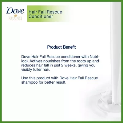Dove Hair Fall Rescue Shampoo with Nutrilock actives deeply nourishes damaged hair from roots up, making hair stronger and reducing hairfall by up to 98%*. Combine with Dove Hairfall Rescue Conditioner every time you shampoo for best results.